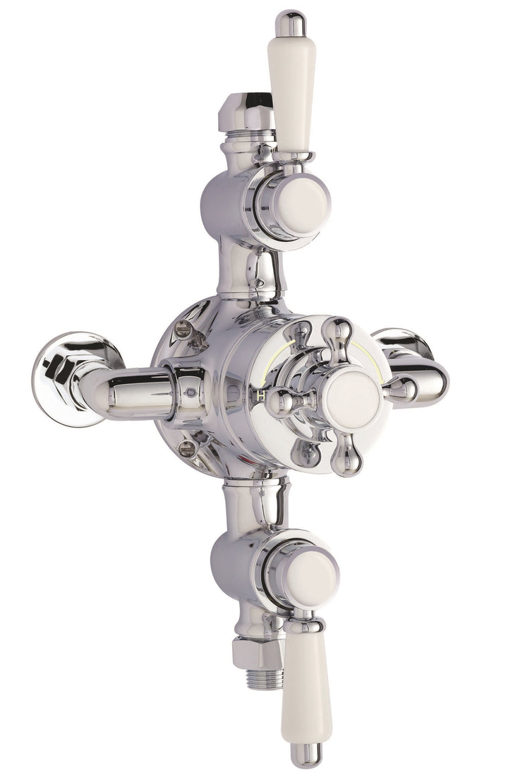 Bring a Victorian sensibility to your bathroom with this traditional shower. Can be fitted vertically or horizontally. Accurate flow control. Thermostatic control to +/- 2 to 3 °C even if the water pressure fluctuates. In the event of hot or cold water failure, the valve will shut down the water supply providing full thermal protection and prevents scalding. The unique cartridge is highly resistant to calcium build up - even in hard water areas. Our valves are suitable for use with all systems: gravity fed pumped unvented high pressure or fully modulated combi-boilers. Excellent flow rates - even at low pressure. The cartridge is fully reversible meaning if hot and cold supplies are the wrong way round it doesn't need re-plumbing. Simply remove the cartridge turn 180° and replace. Manufactured from solid brass.