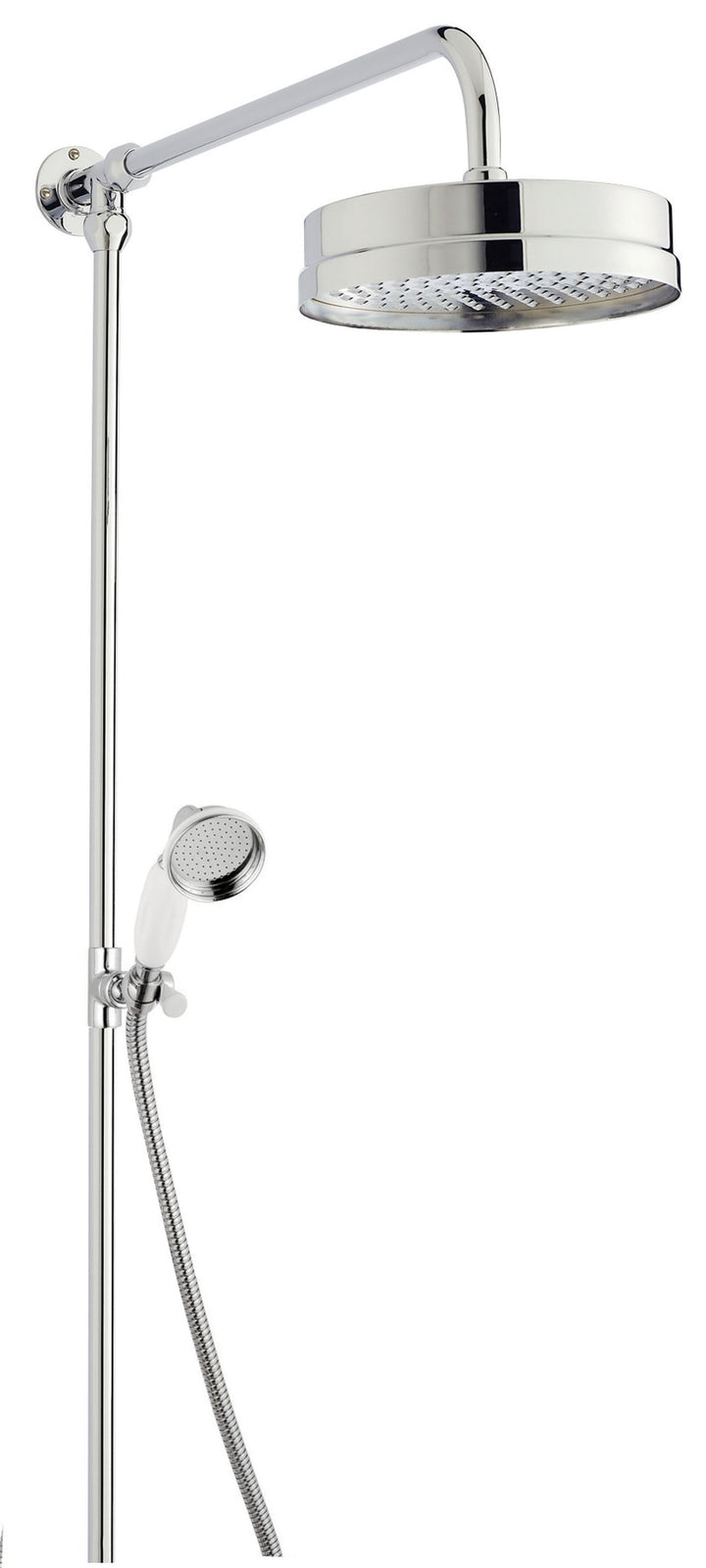 Complete your traditional bathroom with this timeless shower kit. Round shower head and hand set. Suitable for use with exposed shower valves. Diverter not included.