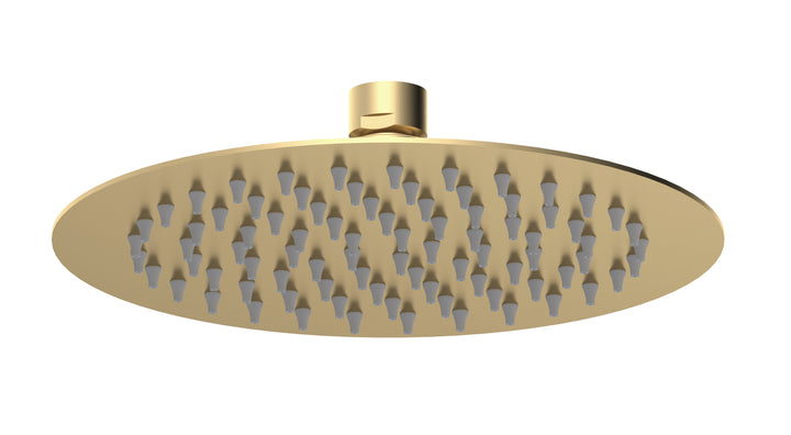 Round minimalist design with brushed brass finish. Manufactured from stainless steel for durability. Suitable for wall mounted or ceiling arms.