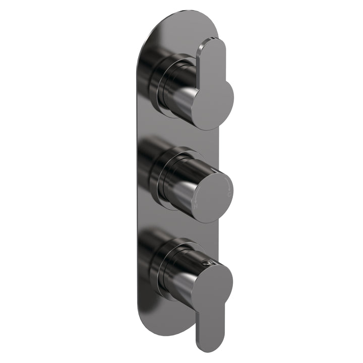 Minimalist sleek design with brushed pewter finish. Can be fitted vertically or horizontally. Accurate flow control. Thermostatic control to +/- 2 degrees even if the water pressure fluctuates. Full thermal protection to prevent scalding in the event of hot or cold water shut off. In the event of hot or cold water failure the valve will shut down as per the relevant standard. The unique cartridge is highly resistant to calcium build up - even in hard water areas. Our valves are suitable for use with all systems: gravity fed pumped unvented high pressure or fully modulated combi-boilers. Excellent flow rates - even at low pressure. The cartridge is fully reversible meaning if hot and cold supplies are the wrong way round it doesn't need re-plumbing. Simply remove the cartridge turn 180° and replace. Manufactured from high quality brass & ABS.