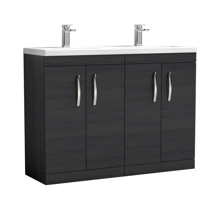 This stiking Charcoal Black finish adds impact and contast to any modern bathroom and creates a designer look. This floor standing unit gives ample storage, perfect for a busy family bathroom. This unit has soft close doors which limits the daily wear and tear and provides a quieter closing action. Colour co-ordinate your unit with a Charcoal Black WC unit. Supplied with high quality double ceramic basin.