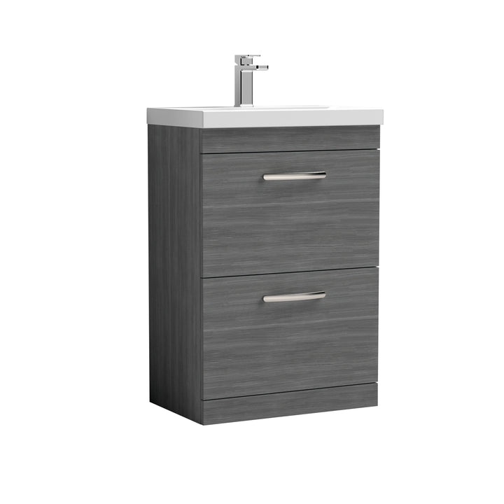 This eye catching anthracite woodgrain finish compliments any modern bathroom to create a designer look. This floor standing unit gives ample storage, perfect for a busy family bathroom. This unit has soft close drawers which limits the daily wear and tear and provides a quieter closing action. Colour co-ordinate your unit with a anthracite woodgrain WC unit. Supplied with high quality vitreous china basin.