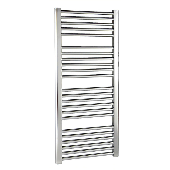 Elegant lines and a contemporary finish make this towel rail the perfect on trend addition to your bathroom. Suitable for use with heating elements. All heating products come complete with fixing screws. Valves sold separately. After installing any new radiators; when refilling the system it is recommended a suitable inhibitor is used. All tappings are 1/2" British Standard Pipe. We recommend pipework is not installed until receipt of radiator or heated towel rail.