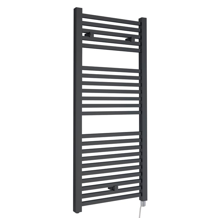 High quality minimalistic design with a stunning anthracite finish. Supplied with fitted 500 watt heating element. To ensure ease of fitting, these electric-only towel warmers are pre-filled with electrical inhibitor solution, which helps protect the internal walls of the radiator.