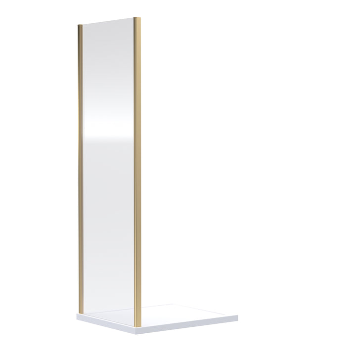 6mm toughened safety glass. Hidden Fixings. Brushed Brass frame. Can be used with pivot and sliding shower doors. All enclosures are backed by a lifetime guarantee.