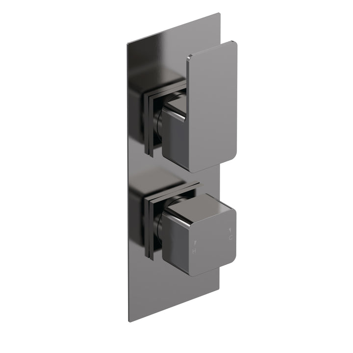 Minimalist sleek design with brushed pewter finish. Can be fitted vertically or horizontally. Accurate flow control. Thermostatic control to +/- 2 degrees even if the water pressure fluctuates. Full thermal protection to prevent scalding in the event of hot or cold water shut off. In the event of hot or cold water failure the valve will shut down as per the relevant standard. The unique cartridge is highly resistant to calcium build up - even in hard water areas. Our valves are suitable for use with all systems: gravity fed pumped unvented high pressure or fully modulated combi-boilers. Excellent flow rates - even at low pressure. The cartridge is fully reversible meaning if hot and cold supplies are the wrong way round it doesn't need re-plumbing. Simply remove the cartridge turn 180° and replace. Manufactured from high quality brass & ABS.