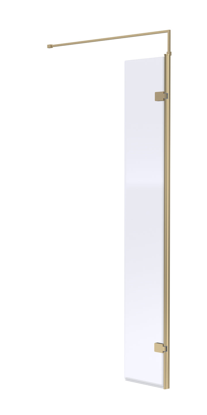 8mm toughened safety glass. Must be used in conjunction with another screen. Includes brushed brass profile kit.
